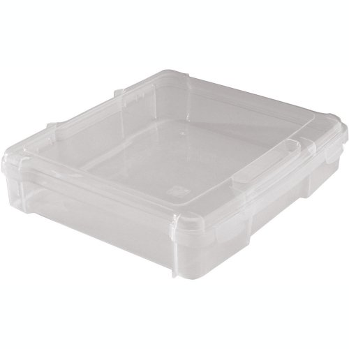Made of heavy-duty, 8 gauge crystal clear vinyl with a triple-reinforced color header and easy-to-grip handle. Inside capacity: 10 5/8" x 12 1/2". Overall size of tote: 11 5/8" x 16 1/2". Hate wrinkled scrapbook paper? These totes keep paper perfectly flat! The tote is also good for organizing projects. --- --- This pack contains one tote with red handles and one tote with green handles. --- --- Also available on Amazon: 13.5" x 13.5" totes in red and blue (TOTE12-RB). --- --- Here's a great clear plastic tote that allows the contents to be clearly visible for teachers, librarians, and parents. The waterproof vinyl keeps books and other contents clean in any kind of weather. The bag allows a quick check on homework and class notices as the students come and go from class, the library, and home. Hate wrinkled paper? These totes keep paper perfectly flat! The tote is also good for organizing projects. The tote has a double handle. Each side is constructed with a triple layer of vinyl, (24-gauge total per side) making it flexible yet extremely secure. This double handle is triple reinforced around the grip which makes it easy to hold and stay securely closed when in use. The tote pocket is made of 8 gauge crystal-clear vinyl with heavy-duty seals and triple reinforced top corners. The tote base is also triple reinforced for strength and durability.